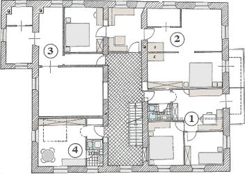 Ponúkame Vám ubytovanie v 2 apartmánoch a v jednom mini apartmáne - monolokali. Vsetky nase apartmány sa nachádzajú na I. poschodí a su hystoricky v stylovo-modernej kombinacií zariadené. Nabytok – pravé drevo. Podlahy sú ciastocne pravé dylové – ciastocne kachlickové.